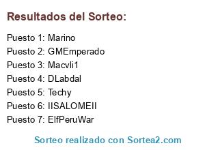 Lista de participantes: LorPablO, ElfPeruWar, Marino, lHyperioNl, XDaniloO, Rogers, Royal, rubenmaton, SADXER, Techy, TorrY, OBLIVION, Macvli1, Bluestark, BMTrixi, DLabdal, Fatality, GMEmperado, IISALOMEII.