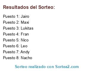 Lista de participantes: Maxi, Nico, Nacho, Fran, Lukitas, Leo, Jairo, Andy.