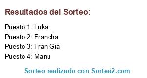Lista de participantes: Francha, Manu, Fran Gia, Luka.