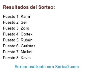 Lista de participantes: Kevin, Maikel, Kami, Zoilo, Cortex, Gutistas, Rubén, Seli.