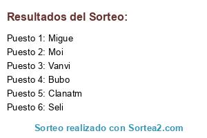 Lista de participantes: Seli, Vanvi, Migue, Moi, Bubo, Clanatm.
