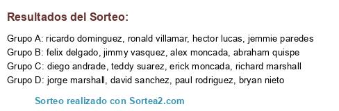 Lista de participantes: erick moncada, ronald villamar, bryan nieto, felix delgado, david sanchez, richard marshall, jorge marshall, ricardo dominguez, hector lucas, diego andrade, jimmy vasquez, abraham quispe, jemmie paredes, teddy suarez, alex moncada, paul rodriguez.