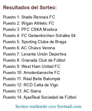 Lista de participantes: AC Chievo Verona, RCD Celta de Vigo, PFC CSKA Moskva, AC Siena, Granada Club de Fútbol, Levante Unión Deportiva, West Ham United FC, Sporting Clube de Braga, Amsterdamsche FC, AjaxReal Sociedad de Fútbol, Stade Rennais FC, FC Gelsenkirchen Schalke 04, Real Betis Balompié, Wigan Athletic FC.