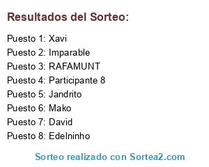 Lista de participantes: Jandrito, Imparable, Xavi, Edelninho, RAFAMUNT, David, Mako, Participante 8.