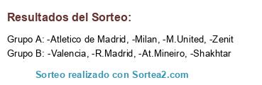 Lista de participantes: -M.United, -Atletico de Madrid, -Zenit, -Valencia, -Milan, -R.Madrid, -Shakhtar, -At.Mineiro.
