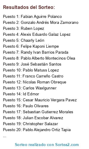 - Puesto 15: Cesar Mauricio Vergara Pavez