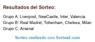 Lista de participantes: Chelsea, Real Madrid, Milan, Inter, Tottenham, NewCastle, Liverpool, Arsenal, Valencia.