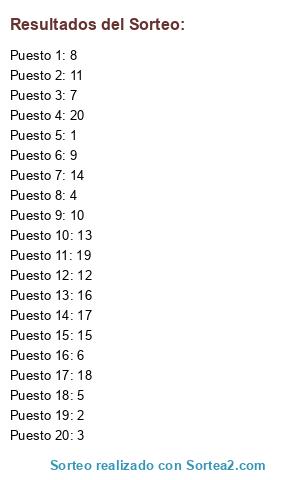 Resultados del sorteo: