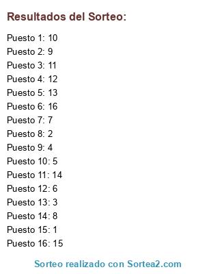 Lista de participantes: 1, 2, 3, 4, 5, 6, 7, 8, 9, 10, 11, 12, 13, 14, 15, 16.