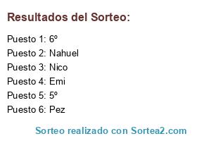 Lista de participantes: Nahuel, Nico, Pez, Emi, 5º, 6º.