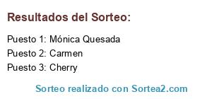 Lista de participantes: AYNA, Carmen, estelblau, Carmen Moles, tapujos, estercicablue, Chaty, Maresilla, marselleson, AMAPOLA, Maria Rosa, Jessi, wall-E, elenah, Mónica Quesada, XACOBEA, suerta87, Trébola, Mare, HECHIZZERA, NuRya G., Marieta, Cherry, Morla, Laia Ferrer Meseguer, Parafarmacia La Vega.