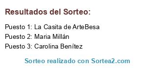 Lista de participantes: Vanessa Esmoris Parga, La Casita de ArteBesa, Ana Belen Garcia L, Stella Stellae, María Esther Herraiz Tornero, Lidia Delgado Moreno, Marisa Fornieles, Celia Rodriguez Pocero, Mami Duna Carolina, Joa Maga, Familia Urquijo Preciado, Ana Belén Ana Lanas, Pepi Romero Alvarez, Montse Fernandez, Margarita Isern Gual, Airun Marbea, Alba Alba Suarez, María José Torrado Criado, Blanca Rodriguez, Kela De Estrada, Buscador de Sorteos, Macarena Soria, Charo Romero Álvarez, Lucia Mendez, Nagore Arostegui Rojo, Manualidades BlueStar, Rosa María Sierra Álvarez, Carmen Contreras, Erika Montes Pérez, Carolina Benítez, Susana Rosell Navarro, Annatallers Esplai Botiga-taller, Mara Vaño, Maria Ortega Gomez, Antonio Fernandez, Maria Millán, Concepcion Matias Simarro, Eva Maria Rivero Barrera, Isadora Mayandia, Raquel Bueno, Piedad Gomez, Sarah Garcia Srlp, Jennifer Bonilla Pizarro, Dolores Maldonado Amaya, Verónica Bataller Carrascal, Ana Maria Esparza, Sofia Esther Ruiz Garcia, Reyes Creativa Mora Mora Mengual, Imma Ramos, Miriam V. Fernández Rodríguez, Artesanía Betiyós, María Jesús Fernández.