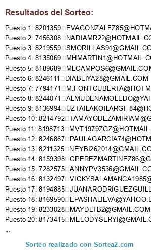 Este sorteo ha sido certificado por Sortea2. Sortea2 garantiza que: