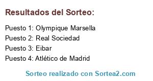 Lista de participantes: Olympique Marsella, Eibar, Atlético de Madrid, Real Sociedad.