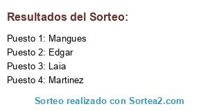 Lista de participantes: Mangues (1), Edgar (2), Martinez (3), Laia (4).