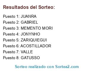 Lista de participantes: ACOSTILLADOR, JUANRA, VALLE, GABRIEL, GATUSSO, JONYNHO, MEMENTO MORI, ZARIQUIEGUI.