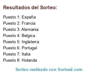 Lista de participantes: Alemania, España, Francia, Italia, Holanda, Belgica, Portugal, Inglaterra.