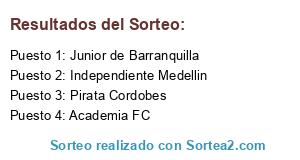 Lista de participantes: Junior de Barranquilla, Independiente Medellin, Academia FC, Pirata Cordobes.