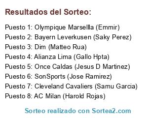 Lista de participantes: Olympique Marsellla (Emmir), SonSports (Jose Ramirez), Once Caldas (Jesus D Martinez), Cleveland Cavaliers (Samu Garcia), Bayern Leverkusen (Saky Perez), Dim (Matteo Rua), AC Milan (Harold Rojas), Alianza Lima (Gallo Hpta).