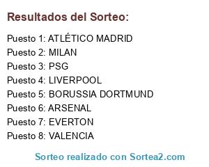 Resultados del sorteo: