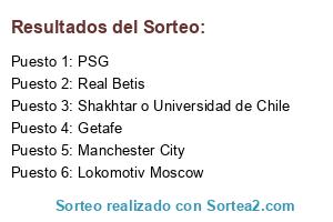 Lista de participantes: Manchester City, Getafe, Real Betis, Lokomotiv Moscow, PSG, Shakhtar o Universidad de Chile.