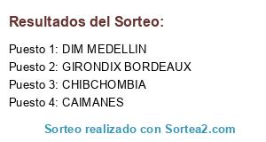 Lista de participantes: DIM MEDELLIN, CAIMANES, CHIBCHOMBIA, GIRONDIX BORDEAUX.