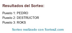 Lista de participantes: ROKS, PEDRO, DESTRUCTOR.