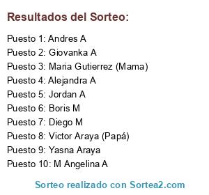 Lista de participantes: Victor Araya (Papá), M Angelina A, Maria Gutierrez (Mama), Yasna Araya, Andres A, Jordan A, Alejandra A, Giovanka A, Diego M, Boris M.