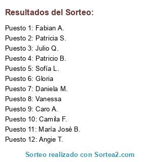 Lista de participantes: Fabian A., Vanessa, Angie T., Camila F., Caro A., Daniela M., Julio Q., Patricio B., Gloria, María José B., Patricia S., Sofía L..