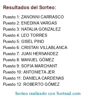 Resultados del sorteo:
