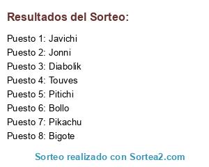Lista de participantes: Bollo, Touves , Diabolik, Bigote, Pikachu, Javichi, Jonni, Pitichi.