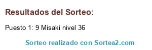 Lista de participantes: 1 Luli nivel 2, 2 Cabeza nivel 26, 3 Clau nivel 43, 4 Luke nivel 100, 5 Muchy nivel 24, 6Jose nivel 12, 7 Pilarchu nivel 26, 8 Blossom nivel 100, 9 Misaki nivel 36.