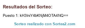 Este sorteo ha sido certificado por Sortea2. Sortea2 garantiza que: