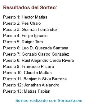 Lista de participantes: Tony__lalinea, Carly777, Alvaro, Jant2508, Jugarretas, X-peridtj-X, Soccatala73, Mareo-inocente, Davilianas, Pes_lolito, Winstroldecca.