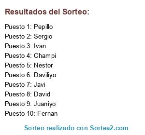 Lista de participantes: Champi, Fernan, Daviliyo, Nestor, Sergio, Pepillo, Juaniyo, David, Javi, Ivan.