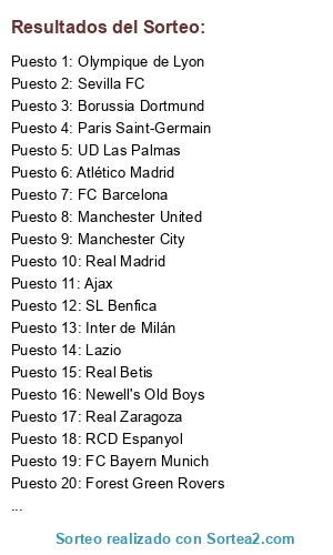 Lista de participantes: Inter de Milán, Real Madrid, Real Betis, FC Colonia, Liverpool, Borussia Dortmund, Fiorentina, Atlético Madrid, FC Barcelona, Manchester United, SL Benfica, UD Las Palmas, FC Bayern Munich, Olympique de Lyon, Lazio, RCD Mallorca, Forest Green Rovers, Newell's Old Boys, Olympique de Marsella, FC St. Pauli, Milan, Real Zaragoza, Ajax, Roma, Atlanta United FC, FC Basilea, Paris Saint-Germain, Manchester City, Sevilla FC, RCD Espanyol.