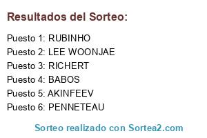 Lista de participantes: LEE WOONJAE, BABOS, AKINFEEV, RICHERT, RUBINHO, PENNETEAU.
