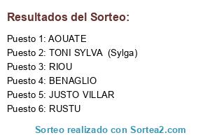 Lista de participantes: RIOU, TONI SYLVA (Sylga), BENAGLIO, JUSTO VILLAR, AOUATE, RUSTU.
