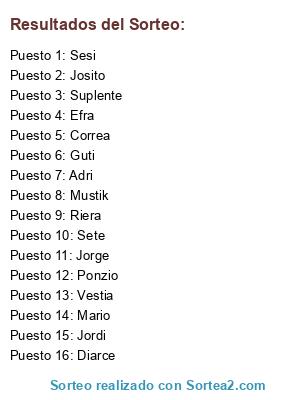 Resultados del sorteo: