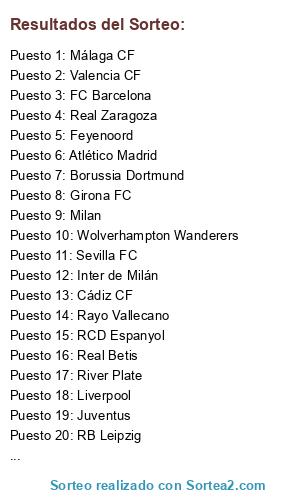Lista de participantes: Inter de Milán, PSG, Real Betis, Wolves, FC Bayern Munich, Borussia Dortmund, Valencia CF, RCD Mallorca, Arsenal, Manchester United, Málaga CF, UD Las Palmas, Villarreal CF, Levante UD, Liverpool, Juventus, Manchester City, Real Madrid, RB Leipzig, Rayo Vallecano, Milan, Real Zaragoza, Ajax, FC Barcelona, Chelsea, AS Monaco, Newcastle United, RCD Espanyol, Sevilla FC, Brighton.