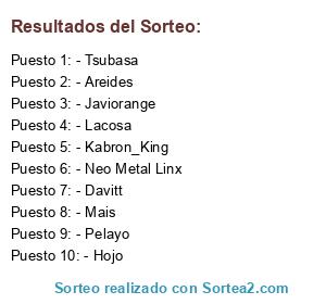 Lista de participantes: - Areides, - Pelayo, - Davitt, - Neo Metal Linx, - Kabron_King, - Lacosa, - Tsubasa, - Mais, - Hojo, - Javiorange.