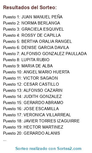 Lista de participantes: GILBERTO SEPULVEDA, JOSE HUERTA, GENEROSO RODRIGUEZ, MIGUEL ANGEL CARDENAS, JUAN MANUEL PEÑA, HECTOR ZERTUCHE, BERTHA ORALIA RANGEL, JUDITH GONZALEZ, JULIO CESAR VILLARREAL, JOSE ESCAMILLA, LUCIA DE RAMIREZ, ANGEL MARIO HUERTA, ROSSANA MARCOS, HECTOR FLORES, JESUS CRUZ, MANUEL MONTEMAYOR, CELIA DUARTE, LORENA GARZA, JAIME GARZA CABAÑAS, MARIO GUTIERREZ, VICTOR SAGAON, HERON RODRIGUEZ ALDACO, JUAN MANUEL HINOJOSA, PATRICIA HINOJOSA, GERARDO ALANIS, CESAR CASTILLO, MARIA DE ALBA, ANTONIO LOPEZ DE LA PARRA, MARIA ELENA GONZALEZ, JUAN FELIX CARDENAS, ROSARIO MONTEMAYOR, VERONICA VILLARREAL, PEDRO TIJERINA, AMERICA SANCHEZ, LUPITA RUBIO, HECTOR PUENTE SEGURA, RICARDO PERERA, ANGEL MARTINEZ VILLARREAL, ALICIA MORA ESCAMILLA, HECTOR VELA, LUIS MARROQUIN, ALFONSO CAZARIN, GRACIELA ESQUIVEL, ALFONSO GONZALEZ PAULLADA, NOHEMI VERASTEGUI, HECTOR MARTINEZ, RODRIGO YTURRIA, ALEJANDRO LLOVERA, LORENA MANCEVO, ANGEL SERNA, NORMA BERLANGA, ROSSY DE CAPILLA, CRISTINA DIAZ, JOSE ANGEL FAVELA, MARIA DEL SOCORRO MOYAR, GERARDO ABRAMO, JUAN FELIX RODRIGUEZ, LETICIA ALMAGUER, ANIBAL TREVIÑO, JAVIER TORRES IZAGUIRRE, SANTIAGO PICCONE, JUAN SALAZAR, JORGE HANUN, JORGE IGLESIAS, GUILLERMO ROBLES, VALDEMAR GARCIA LOZANO, DENISE GARCIA DAVILA, KARLA GARCIA DAVILA.