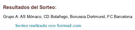 Lista de participantes: FC Barcelona, Borussia Dortmund, AS Mónaco, CD Bolañego.