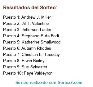Lista de participantes: Katherine Smallwood, Sue Sylvester, Andrew J. Miller, Jefferson Lanter, Faye Valdeyron, Jill T. Valentine, Erwin Bailey, Autumn Rhodes, Stephano F. da Forli, Christian E. Tuesday.
