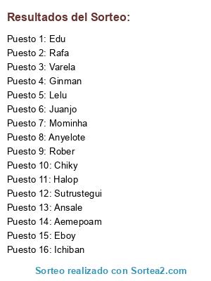 Resultados del sorteo: