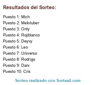 Lista de participantes: Mich, Melotuber, Deyvy, Rodrigo, Rojiblanco, Dani, Only, Universo, Cris, Leo.