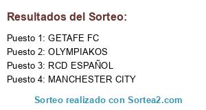 Lista de participantes: OLYMPIAKOS, RCD ESPAÑOL, GETAFE FC, MANCHESTER CITY.