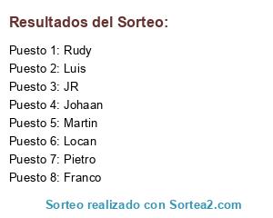 Lista de participantes: Rudy, Locan, Pietro, Franco, Johaan, Martin, Luis, JR.