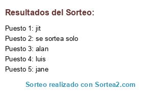 Lista de participantes: alan, jane, jit, luis, se sortea solo.