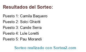 Lista de participantes: Franco Marin, Solci Ghiotti , Cande Serra , Nair Campillay, Camila Baquero , Aldi Boasso, Lule Loretti , Pau Morandi , Giuliana Videla, .